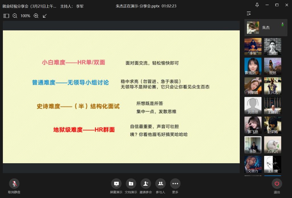本次就业分享交流会为同学们拨开迷雾,使同学们有了更明确的方向,也提升了敢于尝试的勇气。祝愿同学们都能实现自己的目标,获得满意的工作。