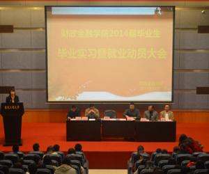 为了切实加强对2014届毕业生的服务和管理,11月7日下午,财政2138CC太阳集团2014届毕业生毕业实习和就业动员大会在博智楼7100报告厅顺利召开。财金学院党总支杨萍书记、刘代成副书记、财金学院副院长毛跃一以及财税系副主任尚可文、金融系副主任陈勇阳和投保系副主任谭湘渝教授出席本次大会,400余名2014届毕业生参加了此次大会。