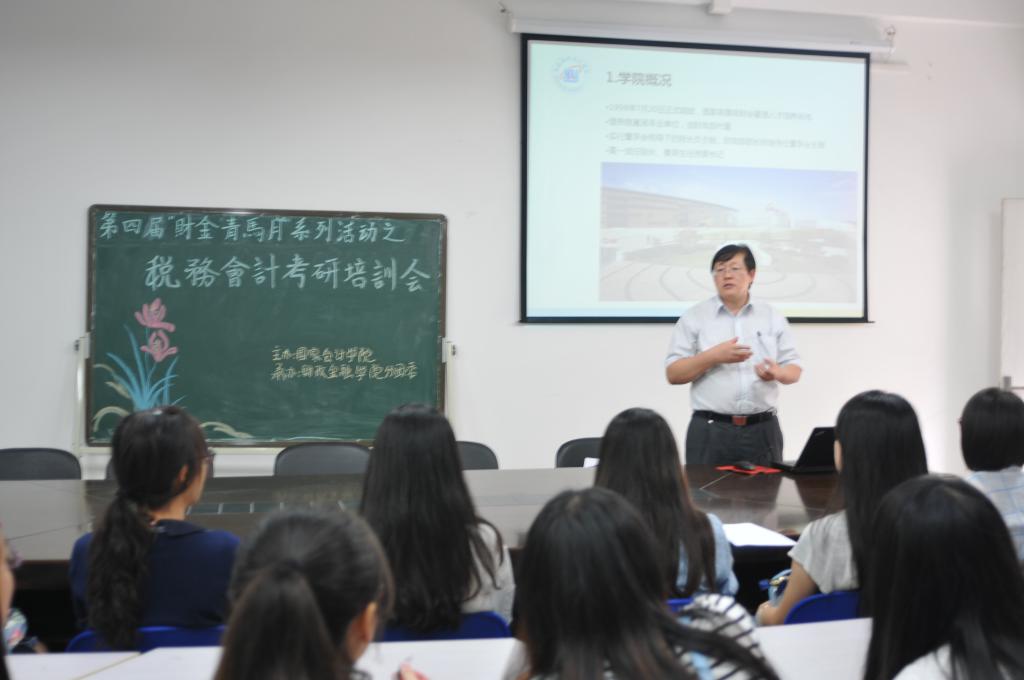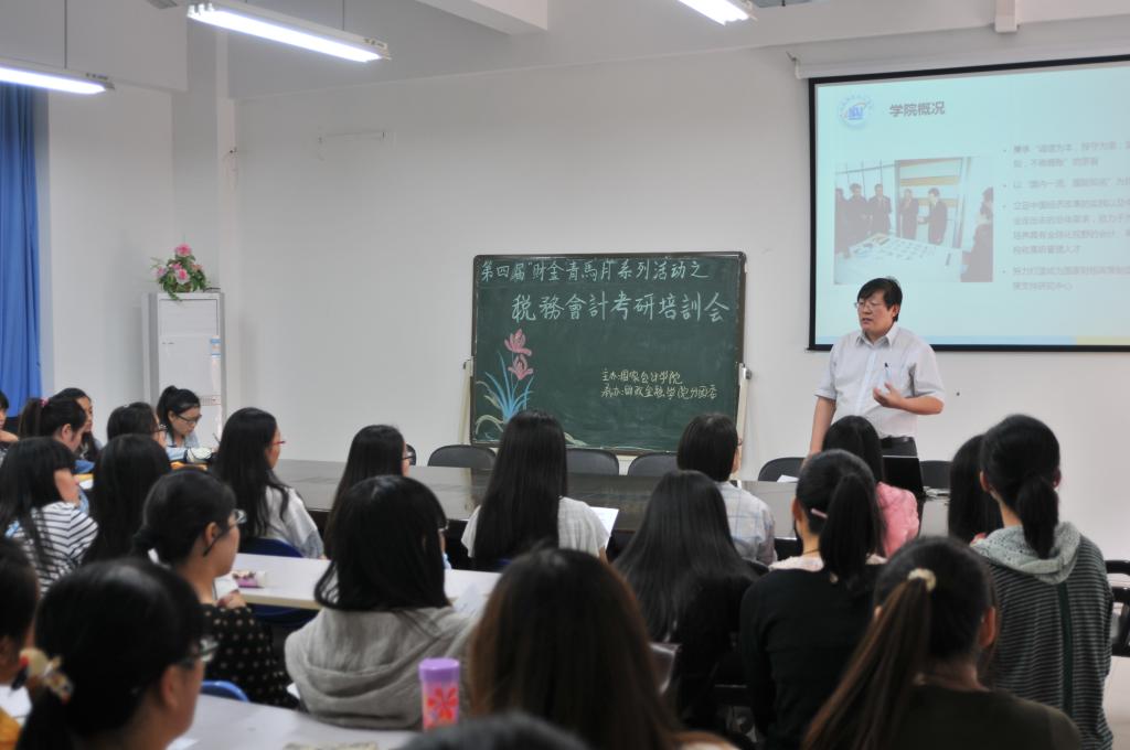 中午,由北京国家会计学院主办、财政2138CC太阳集团分团委承办的第四届“财金青马月”系列活动之财税会计考研培训会在田家炳313会议室举行。北京国家会计学院朱克实教授担任主讲嘉宾莅临现场,财政2138CC太阳集团常务副院长莫云、分团委书记兰丽娟老师及我院财政学、税务学专业的部分学生参加了本次培训会。