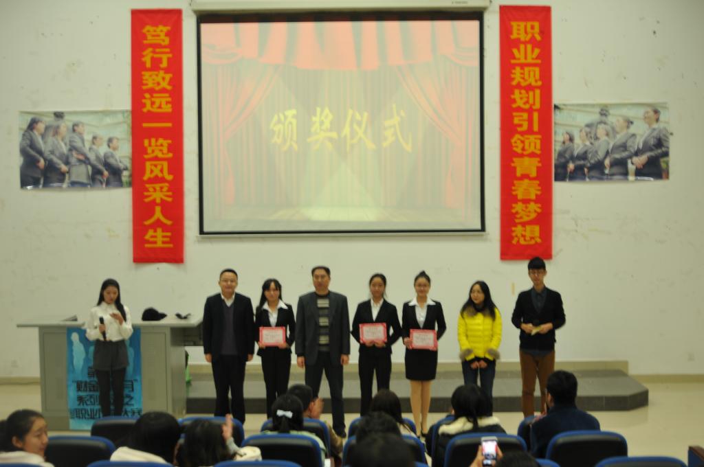 决赛在“青春风采”环节中拉开帷幕,选手们在五分钟内通过视频、PPT等形式,结合市场就业前景和自身优缺点对青睐的职业进行了深入地分析,展现出过硬的专业素质。随后的“点石成金”环节中,评委们从专业的视角对选手们提出犀利的问题,各位选手有条不紊地应对评委们的百般“刁难”,赢得现场观众阵阵掌声。评委老师还让选手为其制定投保计划,而选手的表现也没让老师们失望,一份近乎完美的投保计划也让评委为其“点赞”。最终,12级税务二班的陶小兰同学在各路好手中脱颖而出,夺得一等奖,莫嘉琦、贾璐、陈阳同学荣获二等奖,其他 6 名同学获得三等奖