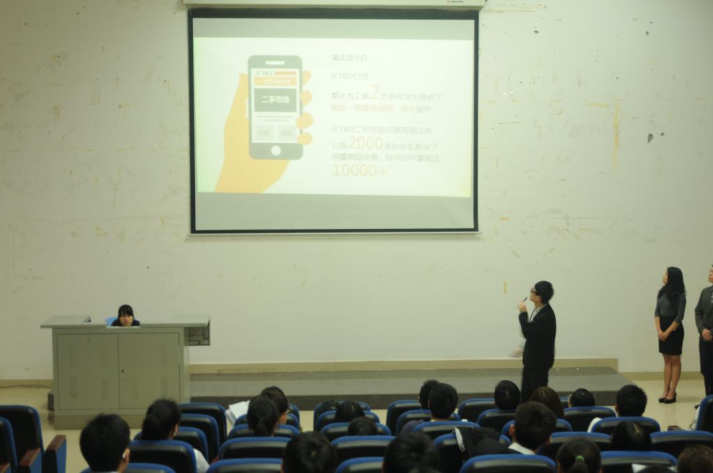 比赛开始,兰丽娟老师对进入复赛的队伍表达了祝贺,在28支参赛队中,有13支冲出初赛,他们来自不同的学院,以自己的创意和优秀的项目策划书博得了评委老师的青睐。13支队伍所制作的项目各不相同,涉及多个方面,各有各的特色。在复赛中,每支队伍将利用6分钟的时间进行PPT阐述以及回答评委问题,这便需要选手充分了解自己的项目。最后,陈晓莉老师讲到,不管比赛结果如何,重要的是要坚持创新,以及将这种优秀的品质继承下去。