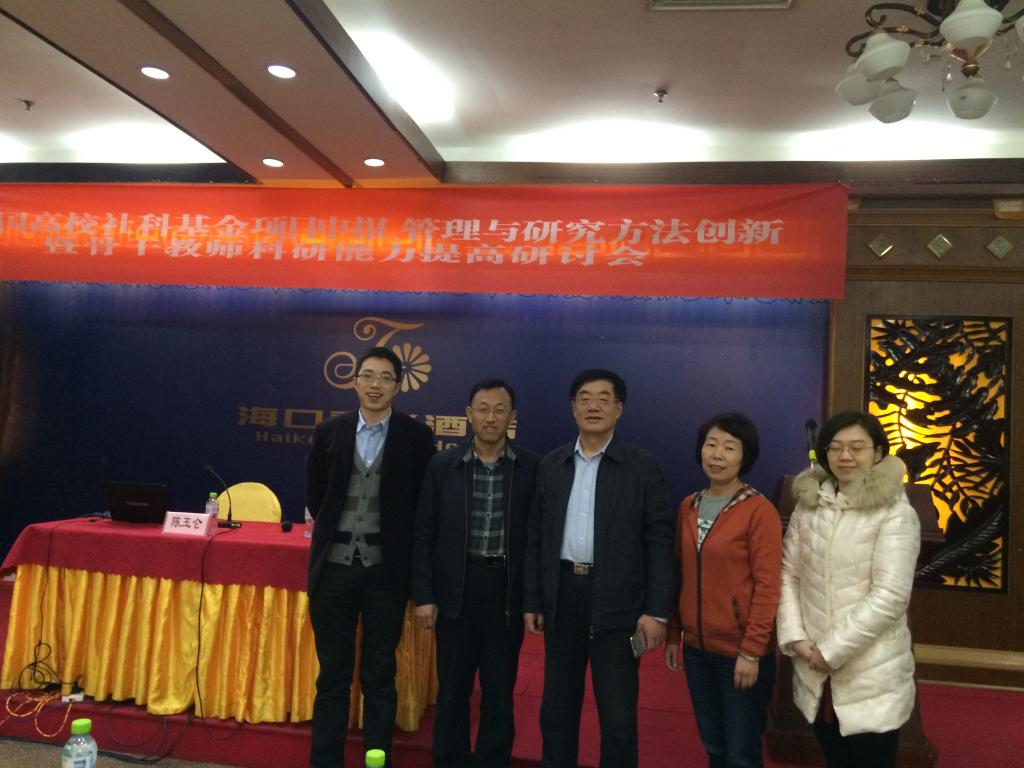 为总结近几年国家社科基金项目申报的规律和特点,帮助广大教师了解社科基金项目评审的最新要求,提高高校科研工作人员的管理水平和科研能力,2016年1月22日至28日,中国教育技术协会在海口市举办了“全国高校社科基金项目申报与评审暨骨干教师科研能力提升研修班”。我院尚可文、魏琪等4位教师参加了本次研修班。中央党校科研处陈玉仑教授、四川大学冯宪光教授、中国教育科学研究院科研处杨润勇教授等就“如何规范申报国家社科基金项目”、“教育部人文社科基金申报的常见问题”、“课题申报的策略与方法”及相关内容进行了深入、细致的讲解。