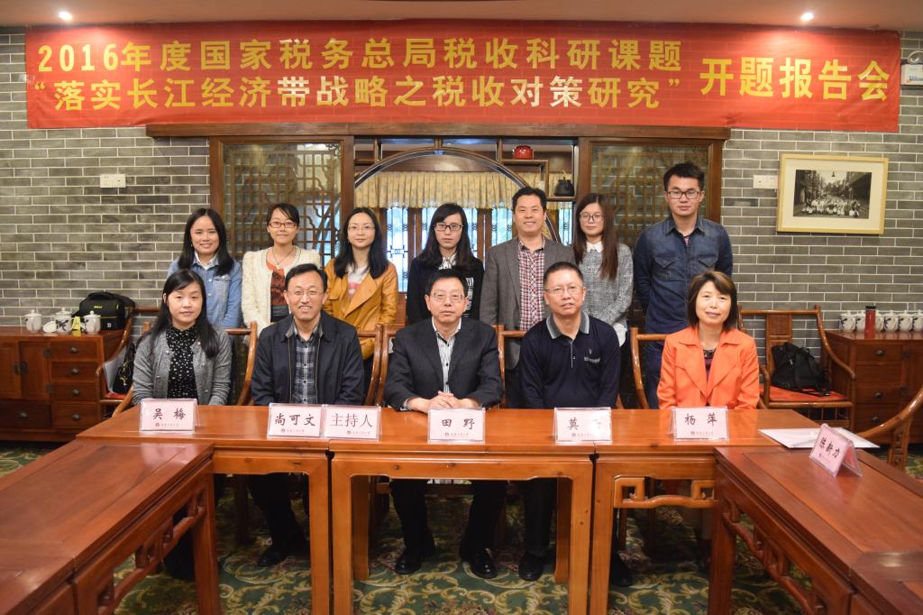 2016 年4月22日 上午,《落实长江经济带战略之税收对策研究》课题开题报告会在我校南山书院成功召开。参加本次报告会的有重庆市地方税务局法规处处长田野和副处长吴梅、2138CC太阳集团经济贸易学院院长兼教育部长江上游经济研究中心基地副主任陈新力教授、2138CC太阳集团财政2138CC太阳集团书记杨萍教授和常务副院长莫云副教授、课题组成员曾胜博士及贾鸿副教授等。