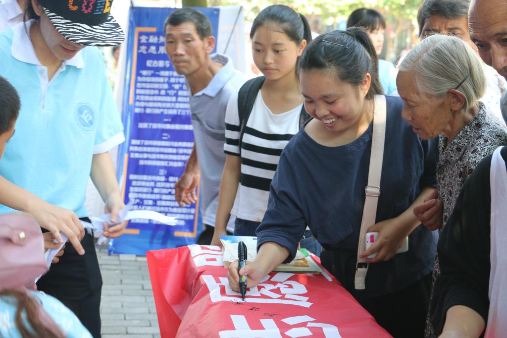 最后,乡民们在横幅上签下名字和寄语,标志着此次活动获得圆满成功。我们希望通过“金融知识进万家”游园会将金融知识、金融信息、金融产品带进农村、服务农业,推进农村普惠金融发展。对实践团成员来说,要把金融知识运用到实践中去,在实践中提升,在实践中成长。