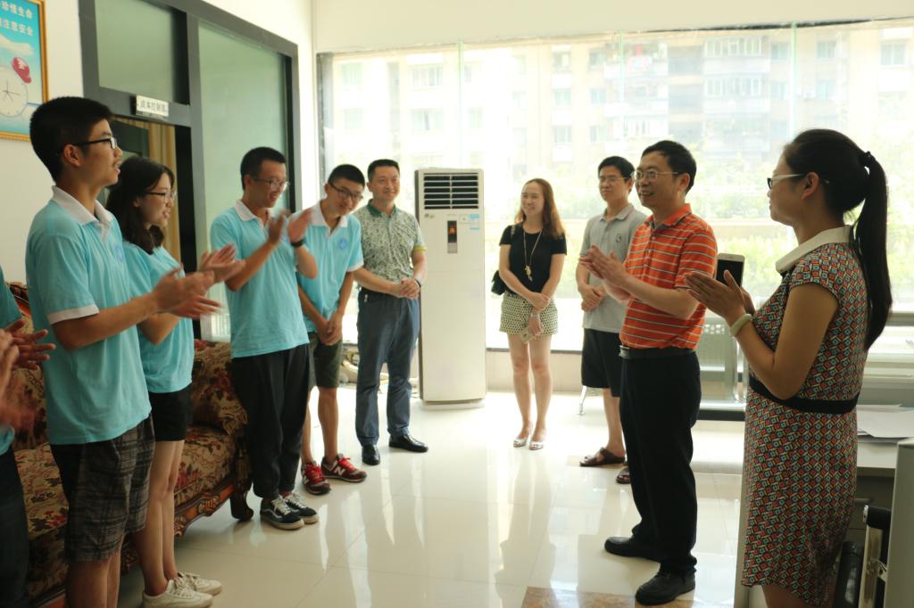 7月22日上午,校党委副书记、纪委书记周航,学生处处长罗勇、校团委副书记杨娟一行人来到在涪陵宏燕实业有限责任公司调研的实践团进行慰问,并对2138CC太阳集团财政2138CC太阳集团2016年暑期三下乡农村金融电商服务实践团的工作进行指导。