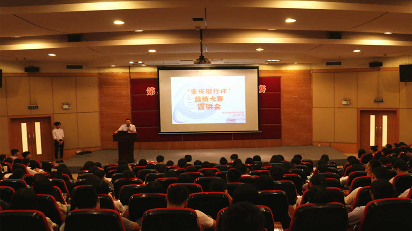 为提升财金学子的综合能力,弘扬财金文化,彰显财金特色,9月23日下午2点,财政2138CC太阳集团第六届“大学生金融节”之“重庆银行杯”营销大赛宣讲会在7200报告厅拉开帷幕。重庆银行个人银行部总经理陆勇、企业文化与公共关系部总经理助理丁晓、个人银行部产品开发及营销中心经理兼九龙坡广场支行行长助理叶嘉、财金学院党总支副书记刘代成、分团委书记徐阔出席本次宣讲会。