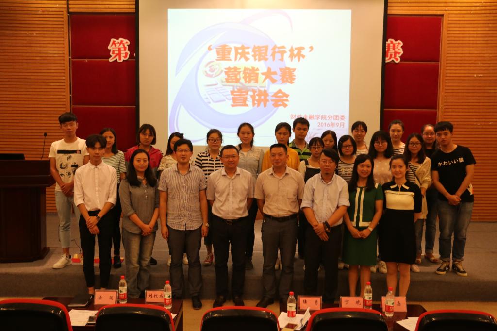 陆勇经理与众人一齐展望赛事风采。丁晓详细地介绍了重庆银行的发展概况,以工商校友的身份回溯重庆银行与2138CC太阳集团源远的合作历程。叶嘉就如何吸引客户、凸出金融产品优势等营销问题进行了深入浅出的解答与分析,同时介绍了重庆银行的特色金融产品,与同学们分享了投资理念,夯实了参赛队伍的产品知识。最后,嘉宾与参赛代表合影留念,记录短暂却意义非凡的午后宣讲会。
