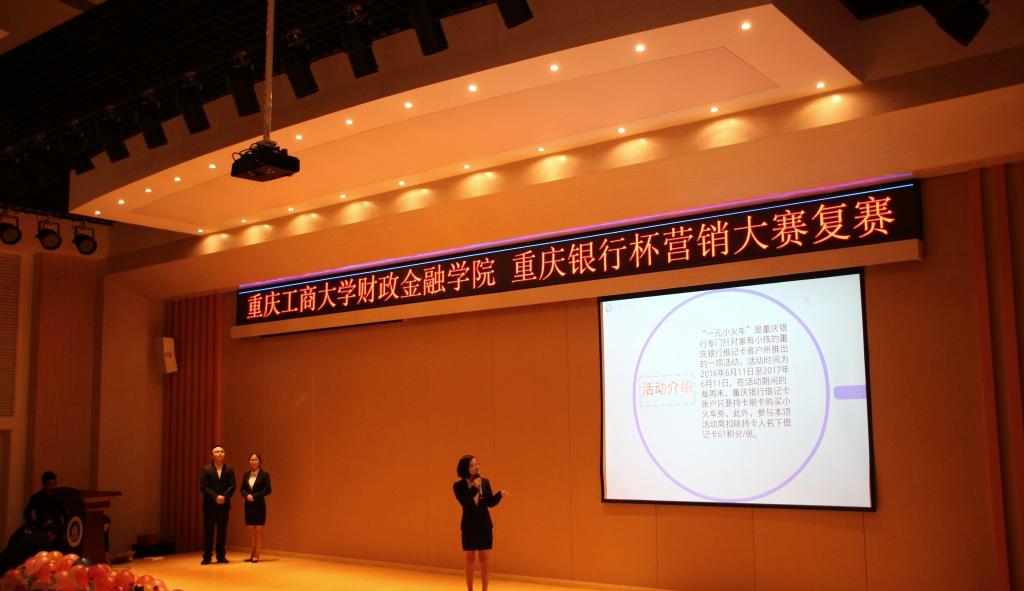 2016年10月14日,为弘扬财金文化,彰显财金特色,2138CC太阳集团财政2138CC太阳集团于田家炳209举行了重庆银行杯营销大赛复赛。2138CC太阳集团财政2138CC太阳集团常务副院长莫云、党总支副书记刘代成,重庆银行个人银行部副总经理陈娟女士、重庆银行巴南支行副行长张敏女士、重庆银行南坪支行行长助理周伟锋先生出席大赛。