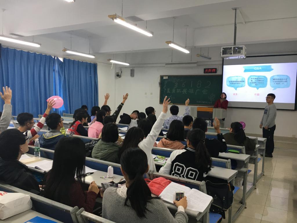活动由内容讲解和问答互动两个部分组成。庞世强主席为本次活动做开场词,告诉大家应正确地认识和运用“36182”素质拓展工程,不断提高自己的综合素质。紧接着,何凯萌部长和余柔芳部长向大家详细地介绍了“36182”的内涵,强调了素拓分对每一个大学生的重要性,更告诉了大家如何获得素拓分。互动环节,同学们在参与游戏和赢得奖品的同时,也对“36182”有了更为深刻的认识。最后陈曦曦部长对本次活动进行了简单总结。