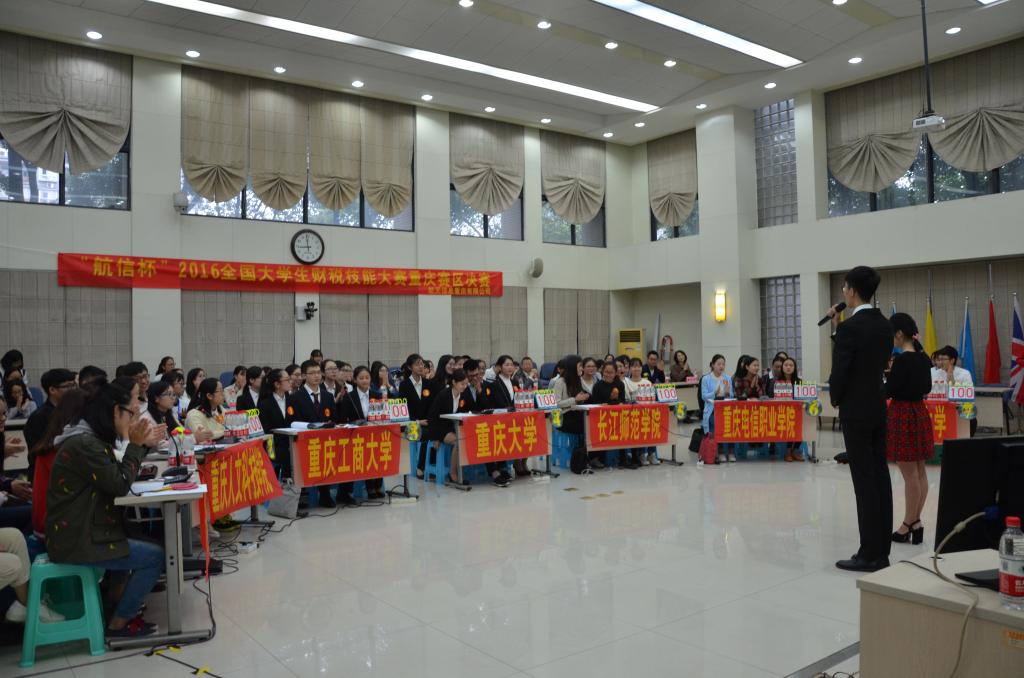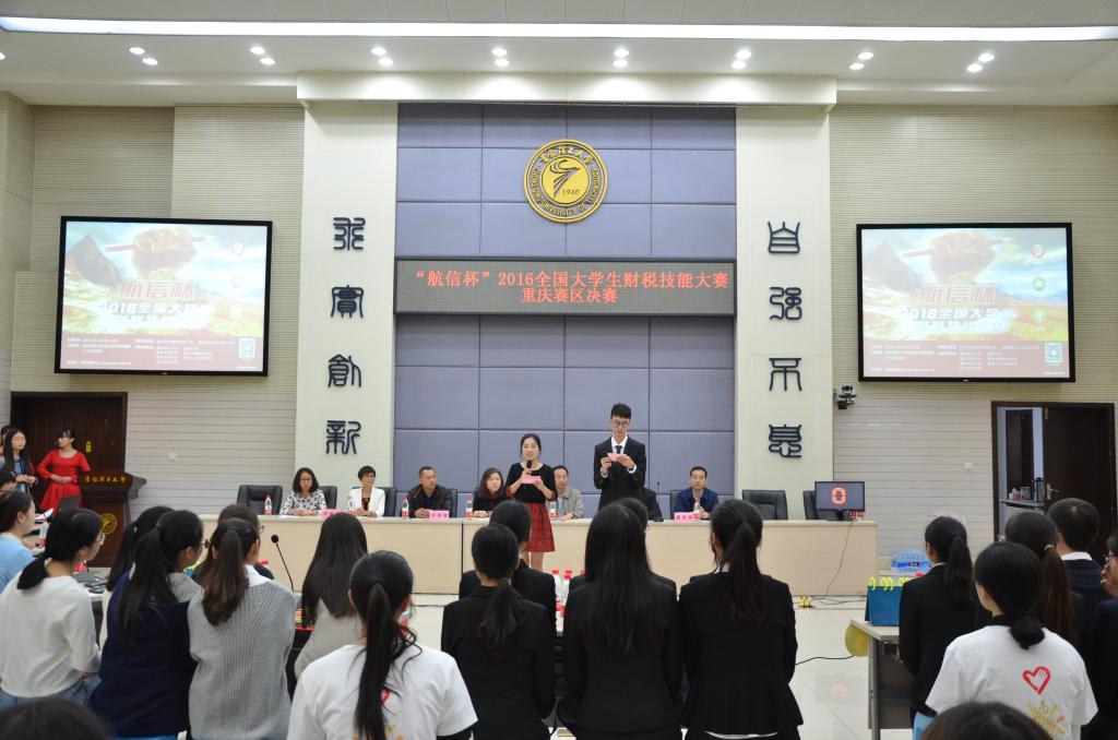 10月15日,航信杯2016全国大学生财税技能大赛重庆赛区决赛在重庆理工大学花溪校区明德楼129会议室举行。重庆理工大学会计学院党总支书记兼副院长阎建明、航天信息股份有限公司市场营销部产业化培训部经理姜宁、重庆理工大学教务处副处长张红民、航天信息重庆有限公司行业拓展事业部总经理杨忠、重庆理工大学会计学院党总支副书记李鑫、航天信息股份有限公司大区经理杨克辉、航天信息培训学校自有财税讲师张亚兵、航天信息培训学校自有防伪税控讲师李金莲出现大赛并担任评委。财政2138CC太阳集团余红霞老师带队,刘润哲等六名同学代表2138CC太阳集团参赛。