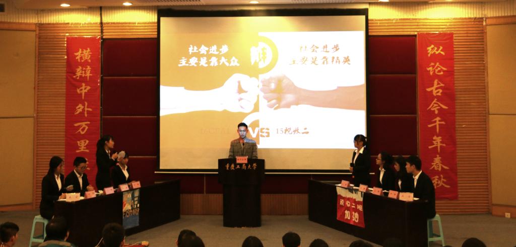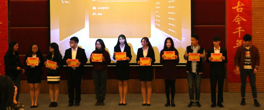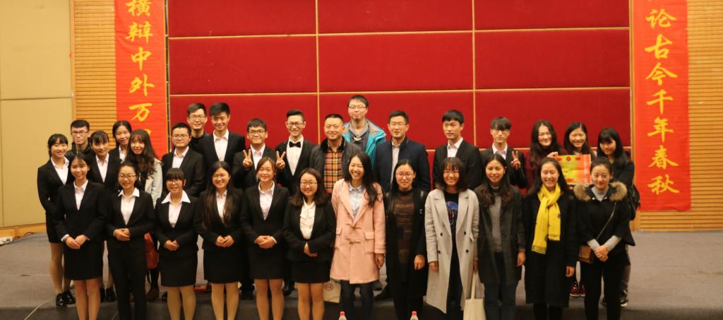此次辩论赛决赛共分为立论、盘问、驳论、攻辩、自由辩论以及总结陈词六个环节。经过正反双方成员简洁的自我介绍后,双方就本次辩题——“社会进步主要靠大众还是靠精英”展开激烈辩论。辩手们在各环节中思路清晰,逻辑严密,引经据典,字字珠玑。其中,双方选手就“改革开放带来的社会进步究竟是由邓小平等精英推动还是由人民群众的实践检验推动”这一问题展开深入分析与辩论,一度将比赛推向高潮。在双方四辩总结陈词后,整场比赛告一段落,评委离席打分。接下来,财金辩论队为大家上演了一场精彩绝伦的表演赛,赢得阵阵掌声。接着由学生会副主席庞世强学长对本次比赛进行点评,徐阔老师对本次活动进行总结。最终,由主持人宣布比赛结果,反方队伍15级税收二班荣获第十五届“财金杯”辩论赛冠军,正方队伍16级CFA获得亚军,正方四辩徐晓获得本次比赛“最佳辩手”称号。获奖选手与之前已经决出的季军15级金融四班代表队、15级金融五班代表队和多位优秀辩手共同参加颁奖仪式,并与老师们一起合影留念。