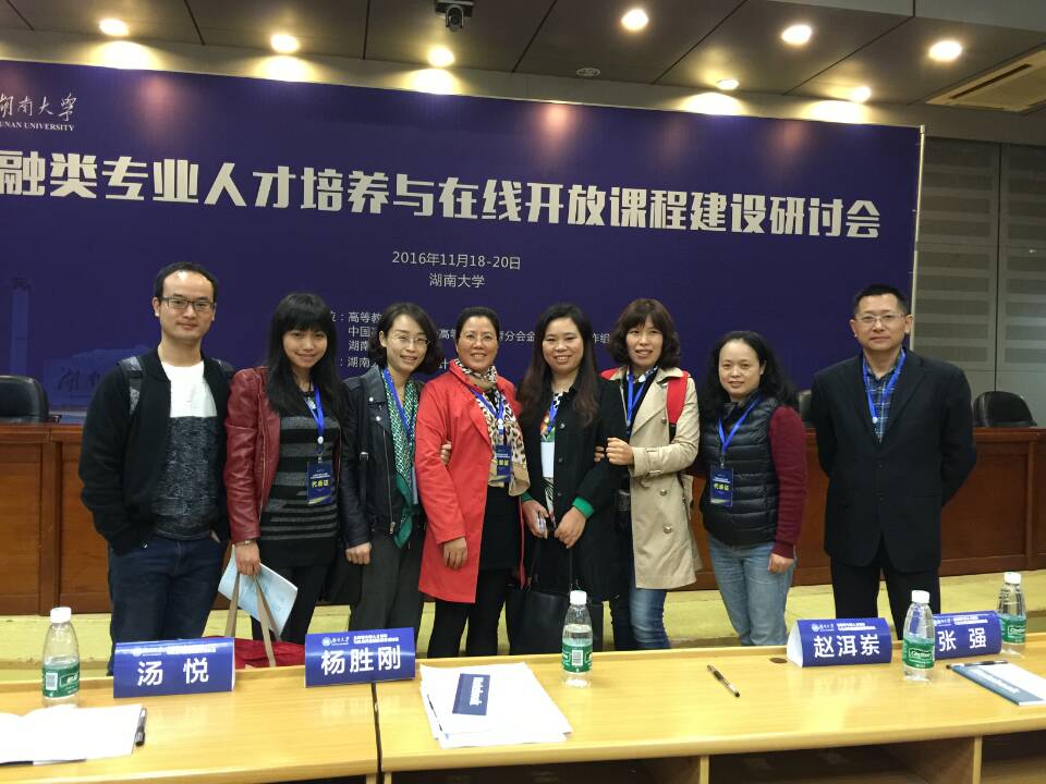 为了深入贯彻《教育部关于加强高等学校在线开放课程建设应用与管理的意见》(教高[2015]3号)精神,探究创新“互联网+”背景下的人才培养模式,推动适合我国国情的金融学类专业在线开放课程建设,整合优质教育资源和技术资源,助推教育教学改革,由高等教育出版社、中国高等教育学会高等财经教育分会金融学专业协作组主办,湖南大学金融与统计学院承办的“金融学类专业人才培养与在线开放课程建设”研讨会,于2016年11月18-20日在湖南大学召开,来自全国80余所高校、300余位教师代表参加了会议,我校财政2138CC太阳集团指派出了金融系专业教师和教学管理人员共11人参加交流和学习。