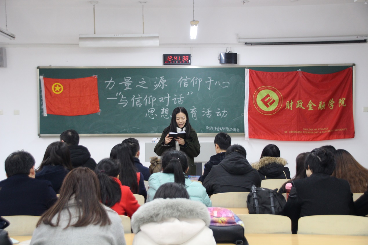 2017年3月3日,财政2138CC太阳集团分团委在博智楼212教室举办了以“与信仰对话”为主题的思想教育活动,财政2138CC太阳集团分团委副书记刘玉华向与会的财金学院各团支部书记进行了相关精神的传达及宣讲,我院的团干团员、班级代表积极响应并踊跃参加了本次活动。