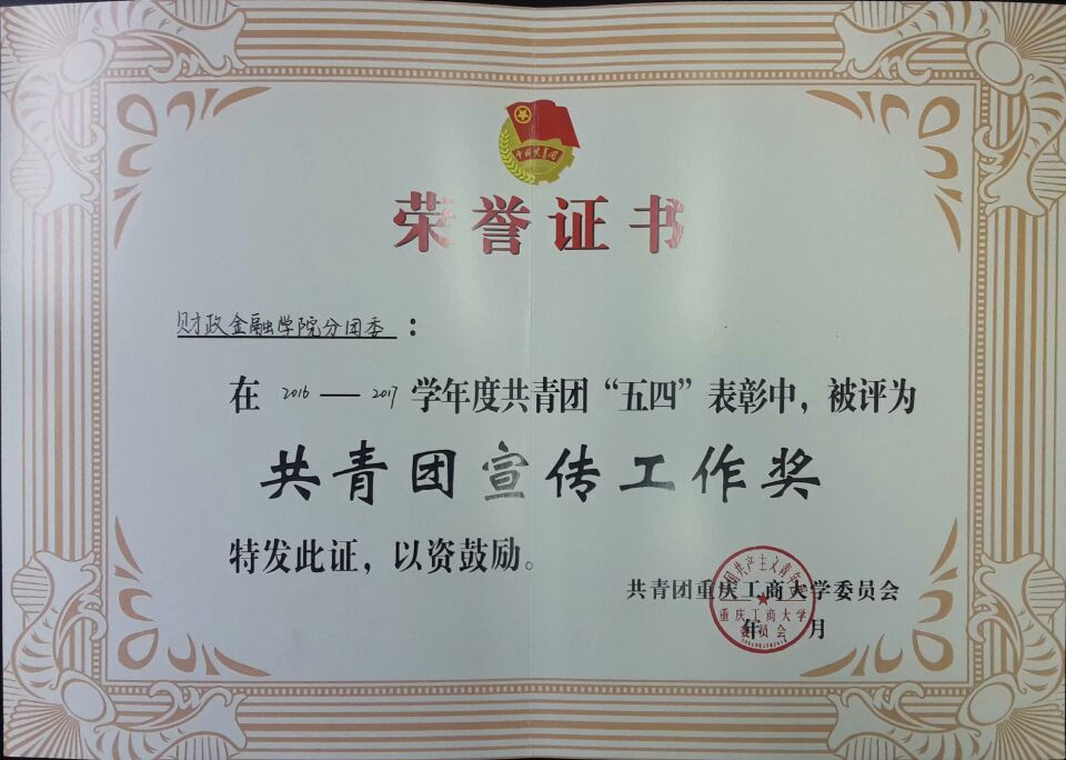活动伊始,校领导为共青团2016-2017学年先进集体和个人颁奖。财政2138CC太阳集团分团委荣获“五四红旗团委”、“共青团宣传工作奖”,我院“星火”义协荣获“优秀义工志愿者分会”,金融证券协会荣获“优秀社团”,2015级税收学专业一支部荣获“五四红旗团支部”,分团委书记徐阔老师被评为“优秀分团委书记”,黄金水和刘润哲同学被评为“共青团标兵”。