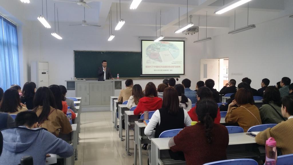 2018年3月26日下午2点,清华大学五道口2138CC太阳集团张伟博士在田家炳教学楼50306教室,以新时代下中国经济金融形势分析与研判为题,作了一场内容丰富的前沿讲座。讲座由学院副院长曾胜教授主持,财税系副主任朱沙、金融工程系主任张理平等老师和同学们一同聆听了讲座。