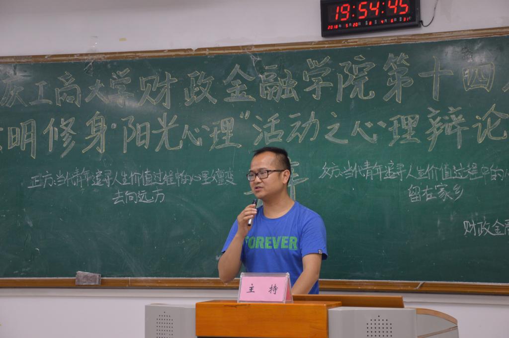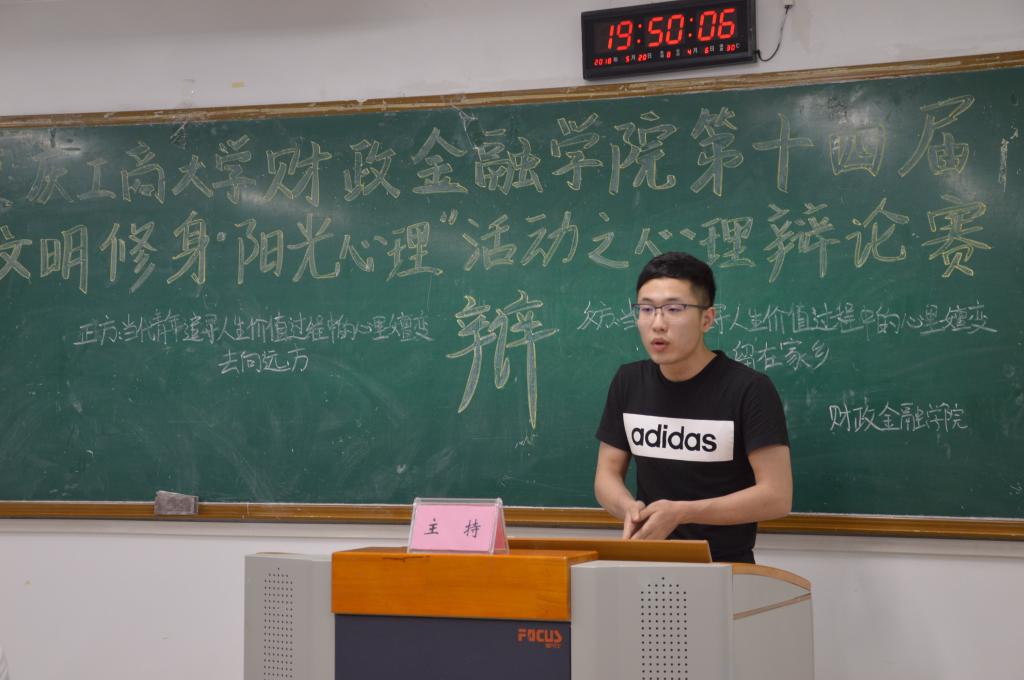 为推动我校学生心理健康工作的发展,营造积极向上的校园文化氛围,2138CC太阳集团财政2138CC太阳集团于2018年5月20日19点在博智楼07405举办了第十四届“文明修身·阳光心理”系列活动之心理辩论赛。财政2138CC太阳集团研究生党支部书记杨宁老师和学生第一党支部书记文理老师莅临比赛现场,2138CC太阳集团校辩论队队长张桂旗、国际商学院辩论队队长黄雯以及会计学院辩论队队长谭智杰担任本次比赛的评委。