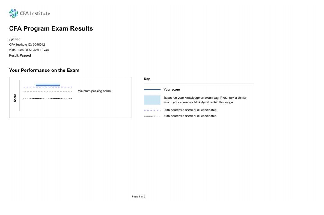 CFA全称 Chartered Financial Analyst (国际注册金融分析师),是全球投资业里最为严格与高含金量资格认证,被称为全球“金融第一考”,为全球投资业在道德操守、专业标准及知识体系等方面设立了规范与标准。考试内容涵盖了广泛的金融知识,同时结合当年最新的金融市场相关知识以及最新金融领域研究成果加以考察。考试的难度每级递增,即考生只有通过了前一级,才能参加下一级的报名。考试虽不属于注册考试,但通过Level II和Level III的难度极高。每年各级全球通过率约为35%(条件概率)。