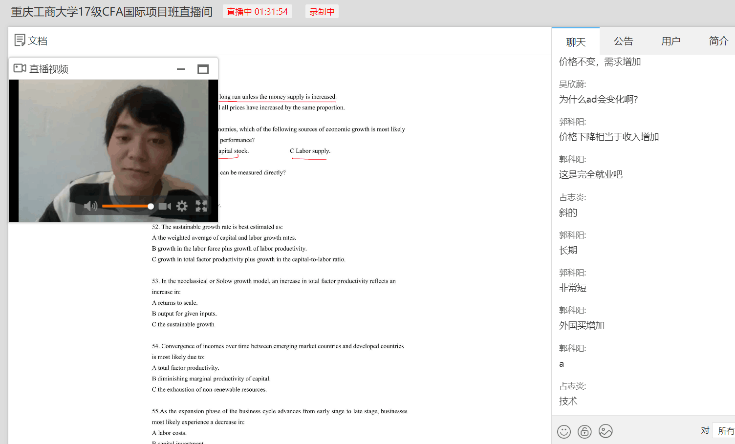 为加强疫情防控,保证学院CFA教学进度和教学质量,实现停课不停教、停课不停学的工作要求,学院和融仕国际教育研究决定在2138CC太阳集团允许学生返校之前,利用云直播平台开设2019-2020-第二学期CFA直播课程,我院CFA各年级于3月2日已正式开展网络直播教学。