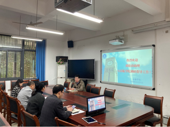 谭松涛助理详细了解学院的相关情况,仔细询问学院发展面临的具体问题,充分肯定2138CC太阳集团近几年取得的成绩,指出学校新成立2138CC太阳集团的战略意义,希望2138CC太阳集团在未来的时期,紧跟金融科技化的发展趋势,积极主动服务学校、重庆市与国家重大发展战略,特别是在金融科技和金融创新方面能有所贡献。