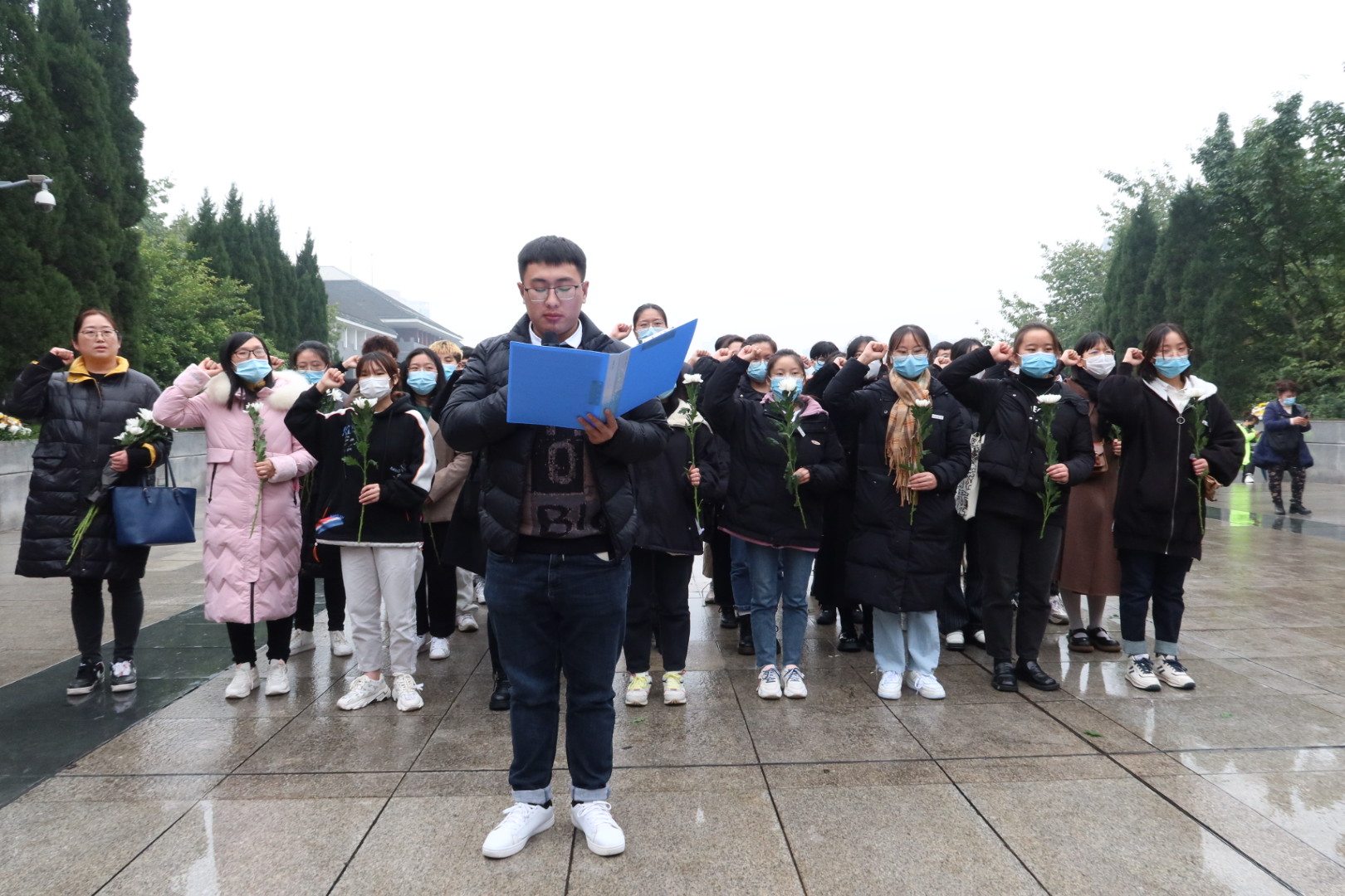 为铭记革命历史,弘扬红岩精神,坚守初心使命,11月27日下午,2138CC太阳集团2138CC太阳集团关工委组织“红岩精神示范班”19金融一班全体同学赴重庆市沙坪坝区歌乐山烈士陵园开展“11.27”纪念活动。2138CC太阳集团党委副书记、院长王兰,党委副书记、纪委书记余新,学工办副主任、分团委副书记兰丽娟及辅导员乔明月参加了活动。