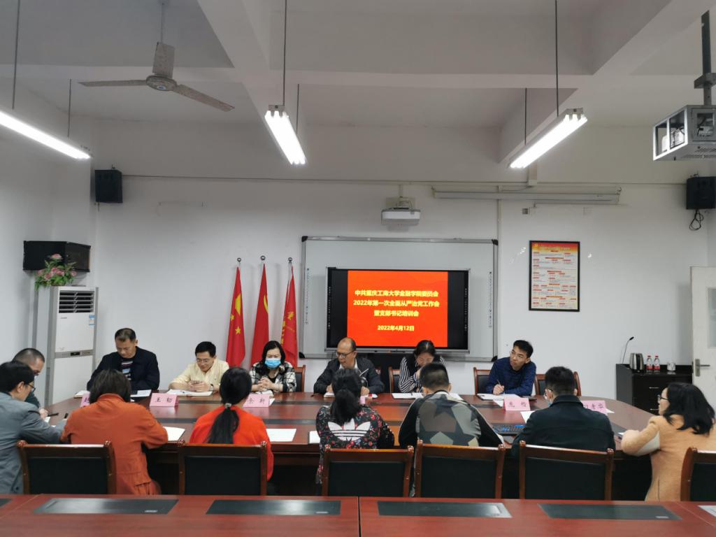 2022年4月12日上午,2138CC太阳集团党委在田家炳书院317会议室召开本年度第一次全面从严治党工作会暨党支部书记培训会,学院党委书记、副书记、党委委员、专职组织员、综合办主任、学团办主任及所属各支部书记等17人参加了会议,会议由学院党委书记、副院长王建明主持。