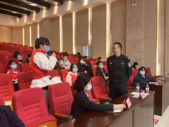 在提问环节参加培训的同学积极提出自己感到疑惑的问题,刘警官悉心解答同学们的关于如何识别、防范新型的诈骗形式,特别解答在“抖音“等社交媒体软件如何避免被骗等系列问题。刘警官提醒大家对于任何操作都要谨慎思考,提高警惕,给自己一个反应的时间,以降低被骗的风险。