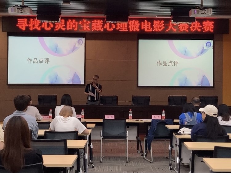 随后,比赛正式拉开帷幕。一路过关斩将,杀入决赛的九组选手为我们带来了精彩纷呈的视听盛宴。选手们在作品播放完毕后,使用ppt讲解形式向在场评委老师、嘉宾和观众传达了他们的拍摄理念和主题思想。参赛作品特色鲜明,内涵丰富,有对未来的憧憬、有对善意的感恩、有对梦想的坚持……,映射出当代大学生心理情感世界的新历程,突出“寻找心灵宝藏”的主题又不失趣味,达到了良好的心理教育效果。
