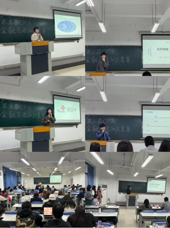 参赛选手为2138CC太阳集团金融学院CFA国际项目班2023级全体学生,共分为十个小组。比赛分风采展现和风险提速知识抢答两个环节。在PPT展示环节,各参赛队伍根据事前选好的金融主题,对某个知识或概念的理解进行介绍,采用图表、案例等各种形式展示,运用中英文进行生动的讲解。在比赛过程中,评委老师对参赛小组的展示进行了专业点评与提问,肯定了选手们对知识的掌握程度与分析能力,同时也指出了不足之处并且给出了相应的修改意见,并对同学们寄予美好的祝愿与殷切的希望。在知识抢答环节,十个小组随机抽题作答,经过激烈的比拼,最后决出了一二三等奖及优秀奖。