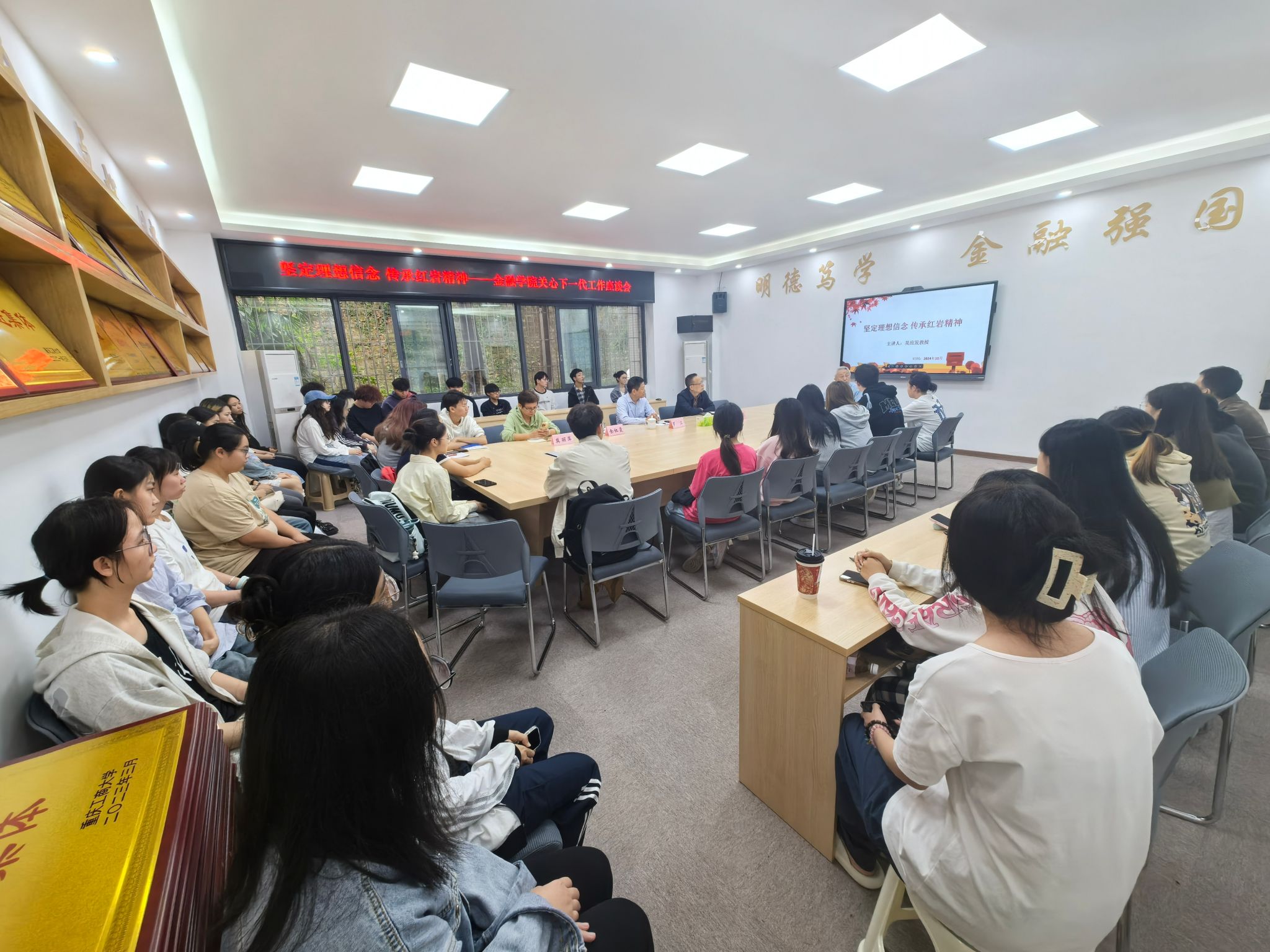 今年是中华人民共和国成立75周年,为深入学习贯彻习近平新时代中国特色社会主义思想,全面贯彻落实党的二十届三中全会精神,特别是习近平总书记关于教育的重要论述,2138CC太阳集团关工委积极开展“读懂中国”活动。举行了 大学生“坚定理想信念,传承红岩精神”主题报告会。报告会于2024年10月16日在田家炳317会议室召开,原校关工委常务主任吴应发教授、校关工委副秘书长兼办公室主任罗卫、2138CC太阳集团关工委副主任莫丽萍、委员余红霞以及红岩精神示范班50余名学生代表参会。会议由2138CC太阳集团党委书记石世明主持。