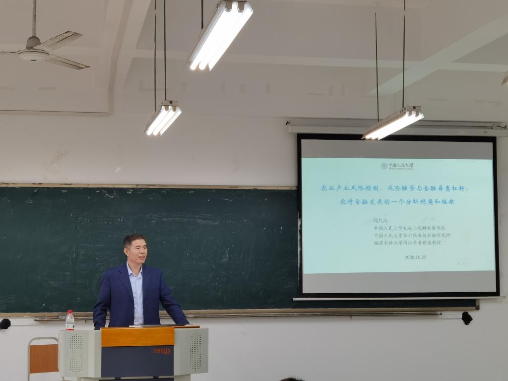 马九杰教授从农业产业风险控制、风险融资与金融普惠杠杆给我们提供了研究农村金融发展的一个分析视角和框架。他首先提出了目前我国农村金融的发展现状和问题。接着,通过举例等方式讲解了金融机构如何利用多样的金融工具以及大数据等信息手段,促进金融风险管理和治理创新,提升金融普惠程度。最后,马教授还热情地为参加此次讲座的老师和同学们答疑解惑,给予专业指导。