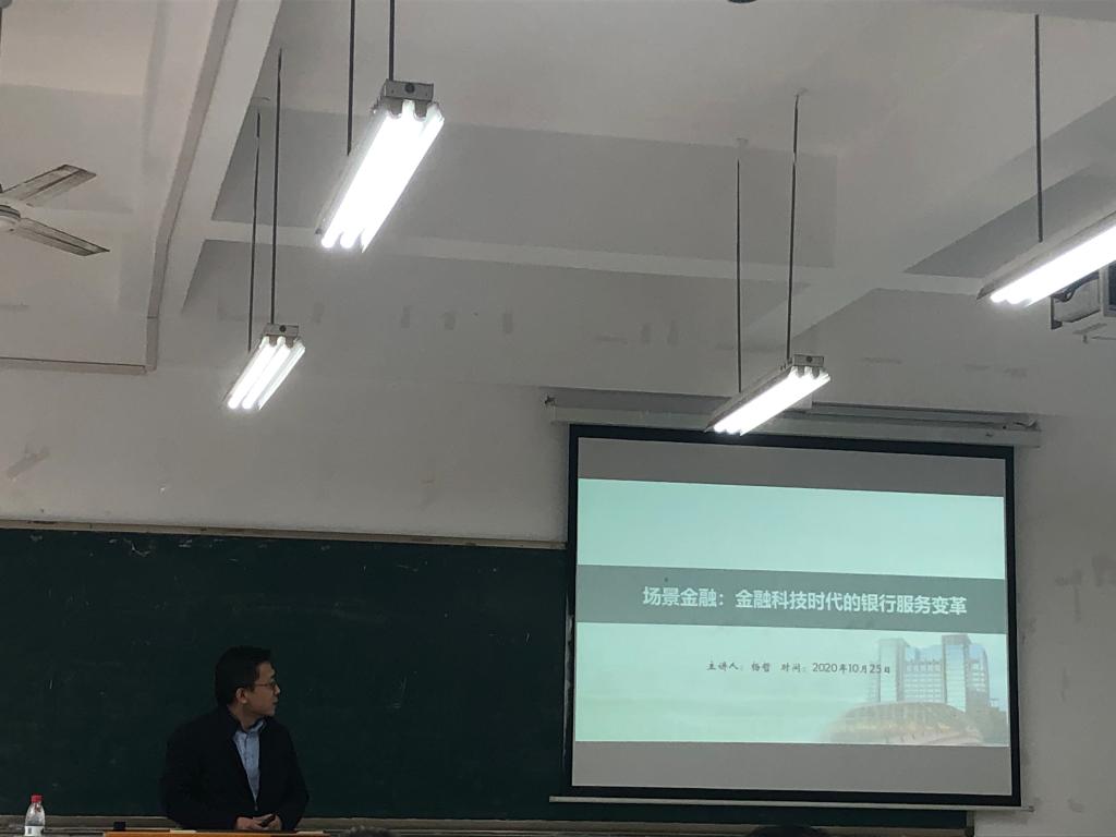 杨哲博士首先从什么是场景金融、科技平台和金融机构的场景金融之战、商业银行面临的场景焦虑、商业银行场景金融的逻辑和模式选择、以及商业银行发展的农村蓝海市场六个方面给我们分别介绍了金融科技时代下的银行服务变革。最后,杨博士还为现场的老师和同学就提出的问题进行耐心 解答,进行专业指导。