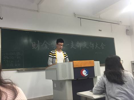 2017年11月8日下午5点40,2138CC太阳集团财政2138CC太阳集团分党委学生第一党支部在田家炳307召开了本学期的第四次支部大会,会议由李明西同志主持,财金学生一支部书记文理列席会议。本次会议的主要内容有:1、讨论6名14级同学和1名15级同学的转正决议。2、讨论3个15级同学的发展决议。3、支部书记文理作总结发言,对本支部发展的同学提出要求。