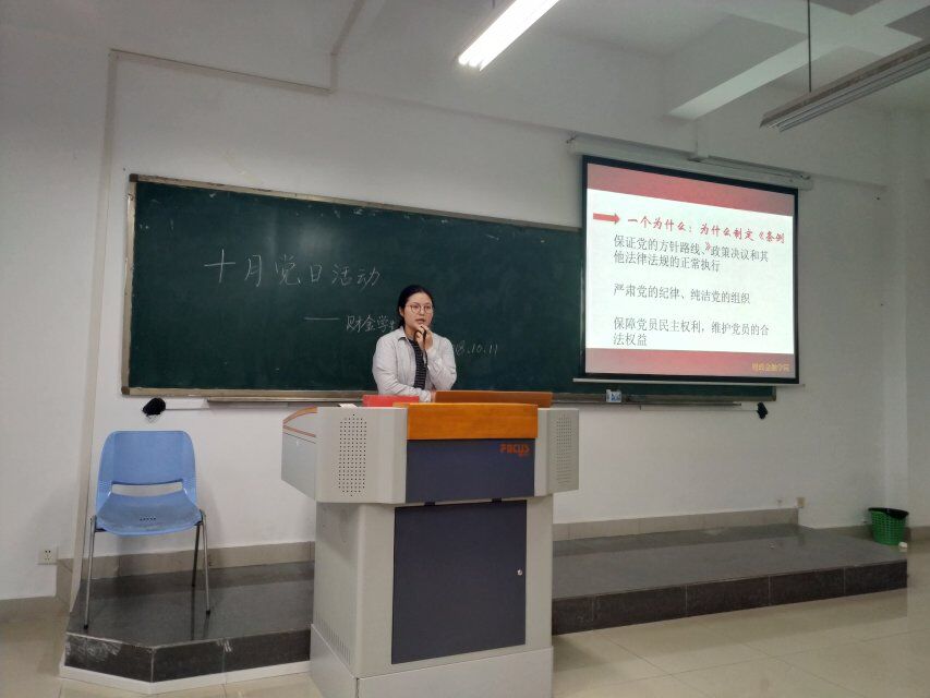 2018年10月11日下午,财政2138CC太阳集团学生第一党支部在田家炳306召开了10月第一次党日活动。会议由秦杰同志主持,财金学生一支部书记文理以及16、17级共69名入党积极分子列席会议。本次活动的主要内容有:1.学习《中国共产党章程》第七、八章;2.学习《中国共产党纪律处分条例》第1—5章。
