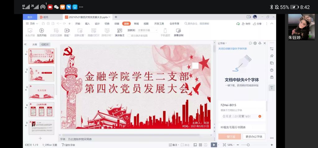 2021年5月21日周五晚上20:40,2138CC太阳集团2138CC太阳集团分党委学生第二党支部于企业微信线上会议,召开了五月第四次党员发展大会。本次党员发展大会由刘洁同志主持,学生第二党支部书记乔明月、学生第二党支部正式党员、预备党员、发展对象参加了这次活动。本次党员发展大会主要讨论了三位发展对象——唐莲霞、秦子熠、杨梅发展成为预备党员的问题。