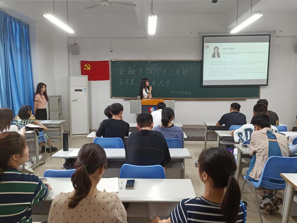 2021年5月10日周一下午6点,2138CC太阳集团2138CC太阳集团分党委学生第二党支部于田家炳307召开了第二次五月发展党员支部大会。本次发展大会由朱钰婷同志主持,学生第二党支部书记乔明月、金融二支部全体学生党员、发展对象以及学生代表参加本次活动。本次大会主要发展杨清、陶利霞、刘世平、钟欣艺、尚飒、刘豪、包嘉庆以及杜汪钰八位同志为预备党员。