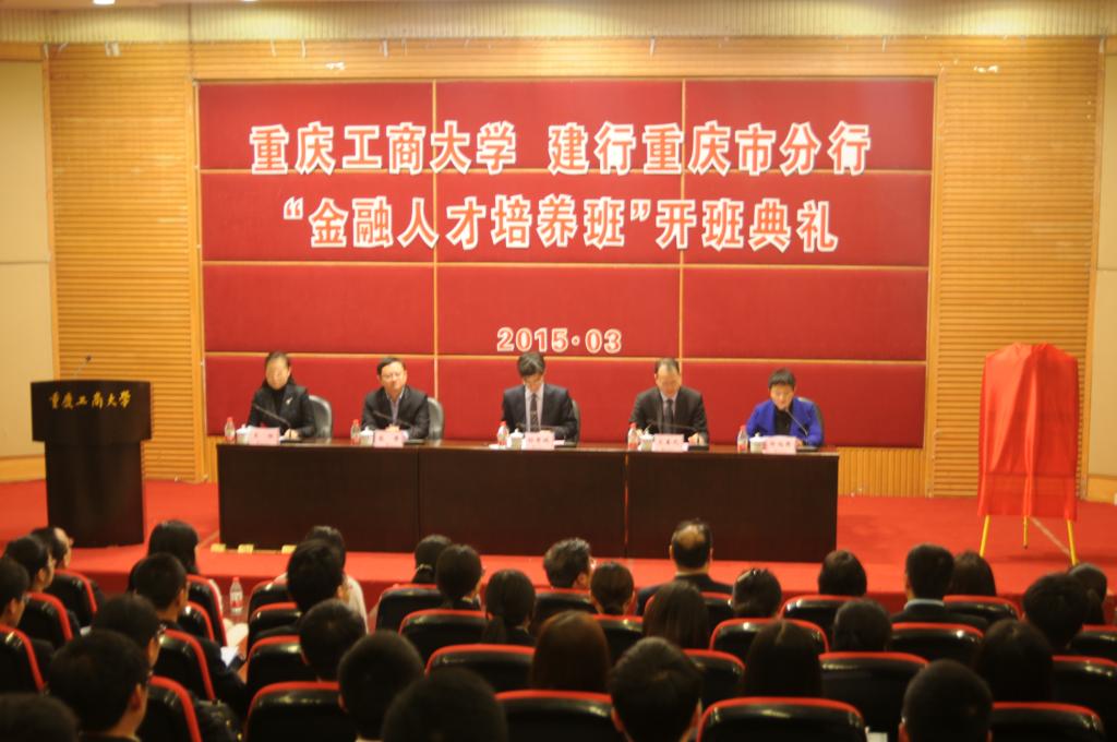 典礼共有五项议程。王栎总经理向大家介绍金融人才培养班的组建情况,她从师资力量、人才培养方式、学院管理、培训考核等方面作出详细说明,最后预祝首届建行人才班取得圆满成功、同学们学有所成。学员代表张梦婷代表全体同学对中国建设银行重庆市分行所给予的机会、对母校的苦心栽培表示衷心感谢,并表示一定会珍惜此次机会,为成为优秀的金融人才而努力学习。孙芳城校长与张希副行长共同为“中国建设银行重庆市分行金融人才培养班”、“中国建设银行重庆市分行人才培养基地”揭牌。随后,文姜元副行长对我校在过去十余年中对建行的大力支持、在共建金融人才培养班中付出的努力表示感谢,并表示“建行班”的成立是对人才培养模式的全新探索,一定会成为人才培养的新高地,为推动重庆经济发展助力。