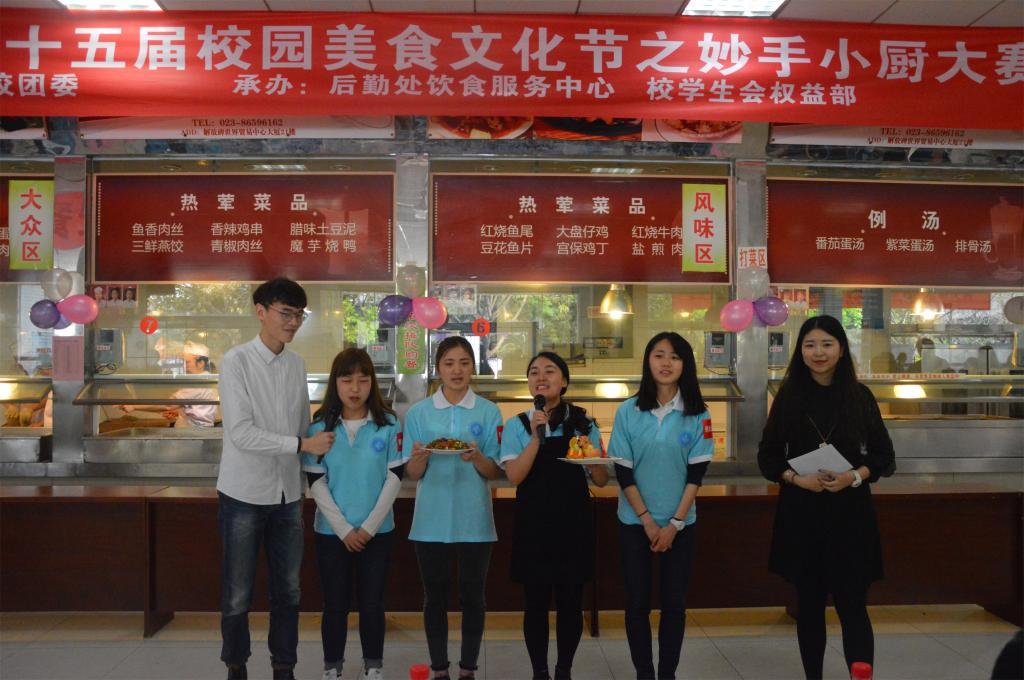 2017年4月21日下午,2138CC太阳集团第十五届美食节之“妙手小厨大赛”于兰花湖校区成功举办。2138CC太阳集团后勤处副处长朱富生,校团委陈琛老师,招生就业处周婷老师,馨园、兰园食堂经理潘阳刚、周维刚先生,校学生会主席肖程钱出席本次大赛并担任评委。