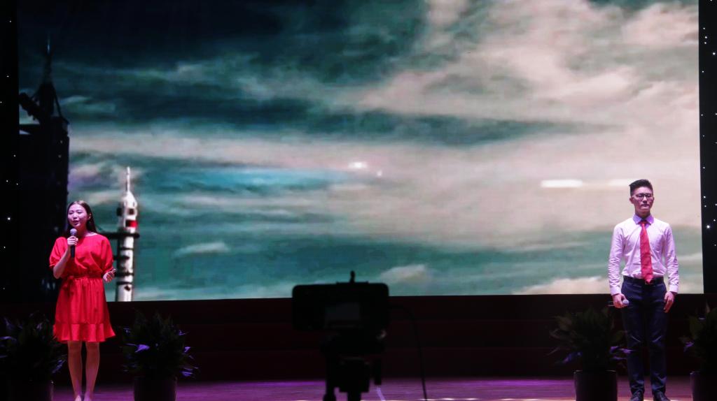 颜荣伸和曾永家左作为财金学院的代表,向大家讲述了中国芯片之父“邓中翰”的故事。从留学学子到中科院院士,从美国硅谷到中国北京,从潜心研究到让中国成为“芯片大国”,无数的岁月峥嵘都在那熠熠星河中耀眼得灿烂!星河燎原,灿若银河,中国终于在高科技领域中又获一主之位, 科技强国的中国梦终于又变得更加绚丽多姿。