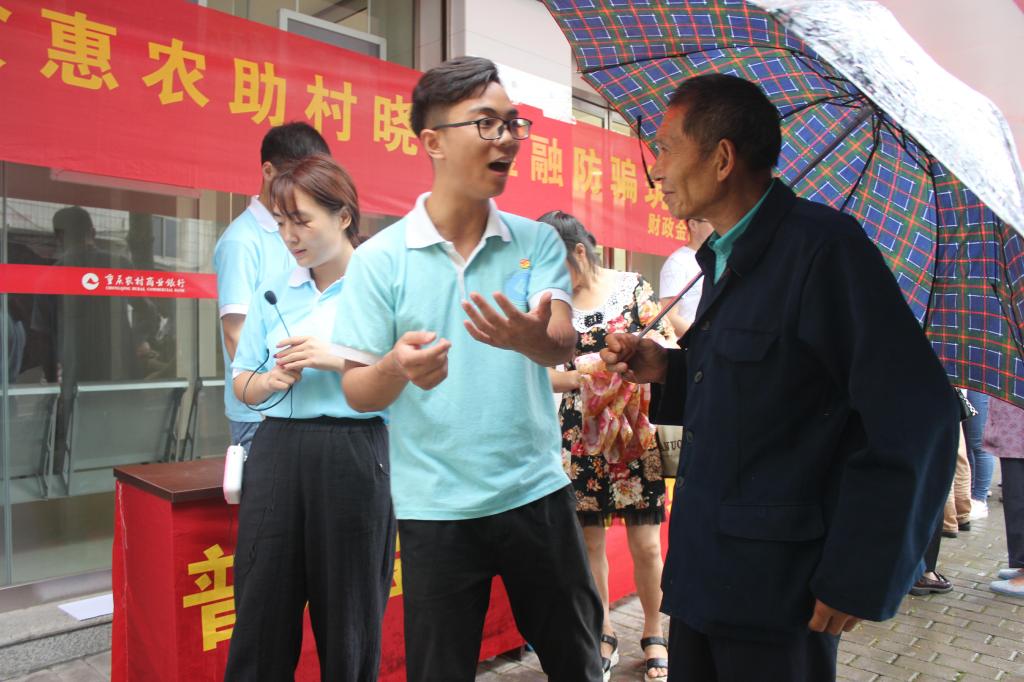 为了增强农民群众的金融知识,提高农民群众的防骗意识,送金融知识下基层。2138CC太阳集团财政2138CC太阳集团暑期“三下乡”农业金融扶贫攻坚调研团在重庆银行业协会和重庆农村商业银行涪陵支行增福分行的支持下,在增福乡顺利举行了“扶贫惠农助村晓,金融防骗筑壁垒”金融知识宣讲活动。