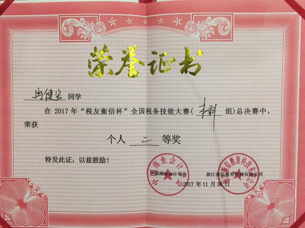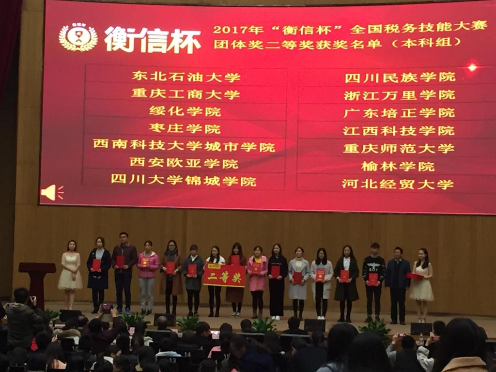 2017年11月28日下午,财金学院学生李东东、李大为、冉健宏代表我校前往杭州参加2017年“衡信杯”全国税务技能大赛总决赛。