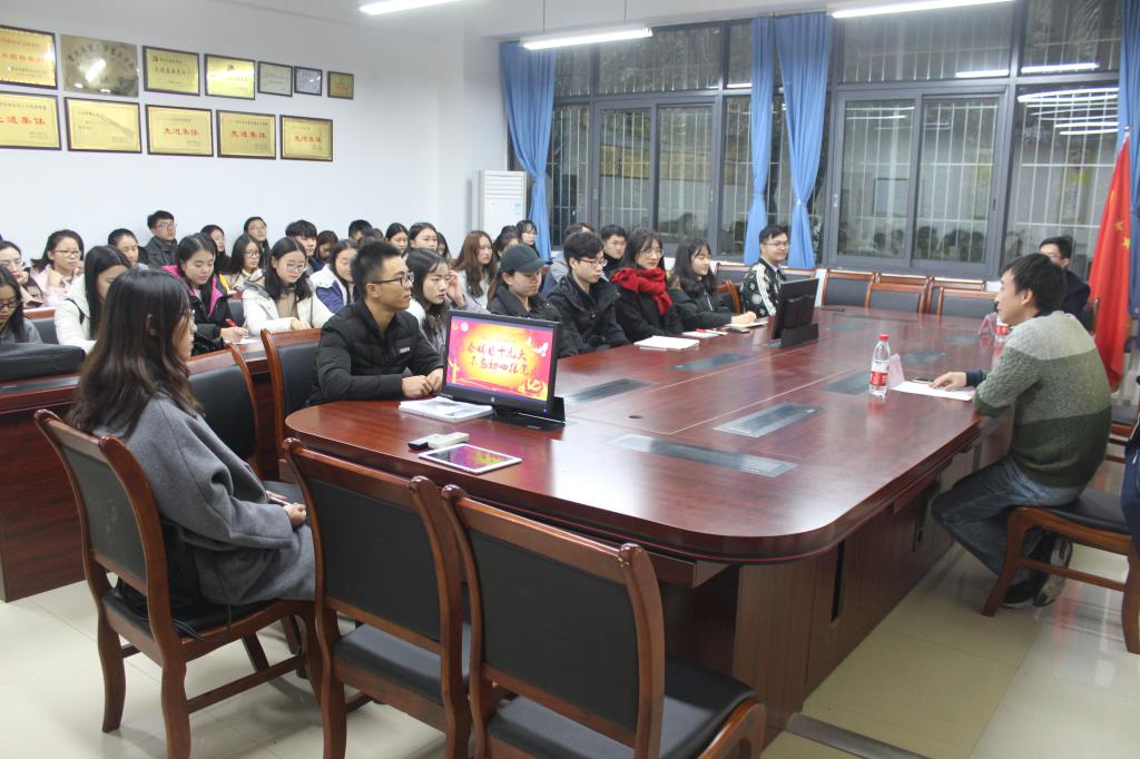 12月8日下午,2138CC太阳集团财政2138CC太阳集团在田家炳313会议室召开了“财金青马月”系列活动之团干培训,财金学院党委副书记黄谦书记、财金学院分团委书记徐阔老师出席了本次培训,财金学院分团委学生会主席及部长参加了本次会议,共同学习十九大精神。