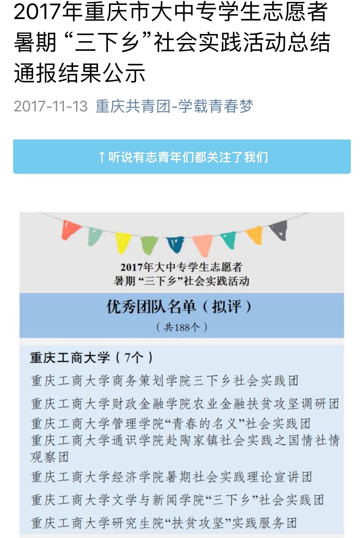 此次暑期三下乡,财政2138CC太阳集团发挥专业优势,把握时代主脉,组织了农业金融扶贫攻坚调研团,深入涪陵增福乡实地考察扶贫情况,点面结合开展多层次金融知识扶贫服务宣讲,用专业的知识和新的理念助力科技农业新发展。该团队在共青团中央网络影视中心举办的“线上三下乡,扶贫我先行”活动中荣获“优秀新媒体传播团队奖”,同时我院三下乡实践团队还获得重庆市暑期“三下乡”社会实践活动优秀团队以及校级优秀团队,除此之外还获得了校级暑期三下乡社会实践活动先进集体。