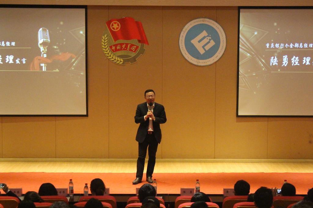 2018年4月25日晚,财政2138CC太阳集团第二届“重庆银行杯”金牌营销员大赛总结暨表彰大会在田家炳209报告厅隆重举行。重庆银行个金部总经理陆勇,重庆银行个金部周璇、左其菡;财政2138CC太阳集团党委书记杨萍、党委副书记黄谦、副院长王兰,金融系主任许世琴、讲师杨佳妮以及分团委书记徐阔作为嘉宾莅临了此次大会,与入围决赛的47位选手和现场观众一起回顾历时三个月的漫漫营销路。