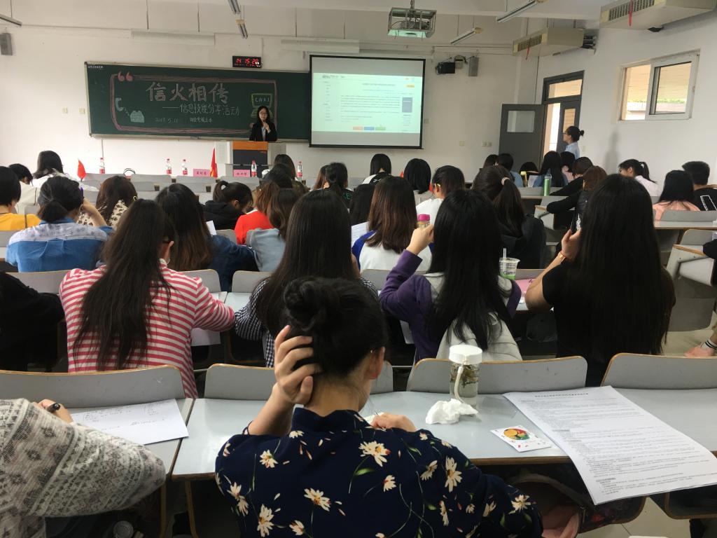 为鼓励我院学生深入了解及利用我校图书资源,充分利用网络搜索平台提升其信息获得能力,养成良好的读书习惯,拓宽知识面,提高审美情趣和人文底蕴,为我院学生在生活以及学习工作中提供更为便利的信息获取方式。财金学院党员服务站与我校图书馆于2018年5月11日在博智楼07301教室联合举办了“信”火相传信息分享活动。此次活动面向财金学院全体学生,并请到了图书馆老师杨老师、CNKI主讲人崔明睿老师、财政2138CC太阳集团党员服务站指导老师乔明月、财政2138CC太阳集团党员服务站站长马丽君以及大自委代表陈时黎。