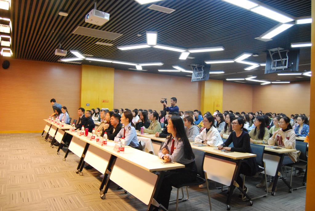 宣讲会开始后,韩健老师上台致辞。他引用孟子的话“徒善不足以为政,徒法不能以自行”,教导我们不仅要学习税法知识,更重要的是要培养税法思维,让税法思维融入到生活和工作中。随后重庆税收普法宣讲团成员、涪陵区税务局马晓敏老师和重庆税收普法宣讲团成员、重庆市第七稽查局何冰翊老师分别向同学们介绍了关于发票的“套路”和税务稽查的“前世今生”。何冰翊老师称: 纳税道路千万条,诚信纳税第一条;涉税行为不规范,亲人朋友两行泪。劝解同学们要诚信纳税。劳动模范、巴渝工匠、国家高级刺绣师、重庆税收志愿者单大琼老师为我们分享了她自己与税收有关的创业故事。我们的学姐、2138CC太阳集团优秀毕业生、南岸区税务局的宋雅洁也来到现场,与我们分享她在税务系统工作的感受。宣讲会在程羿老师致辞中落下帷幕。