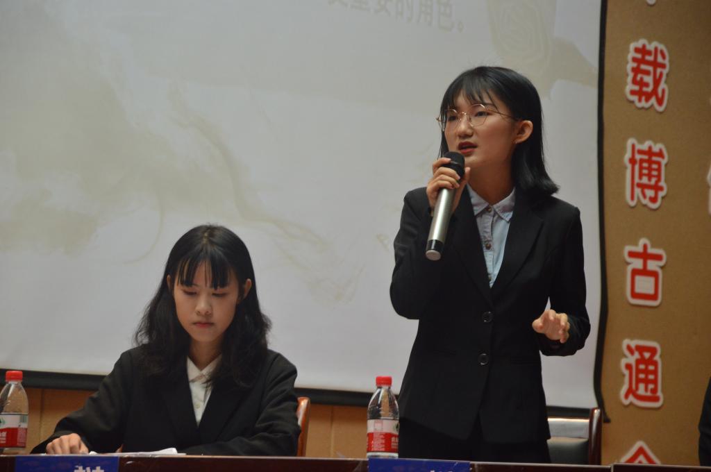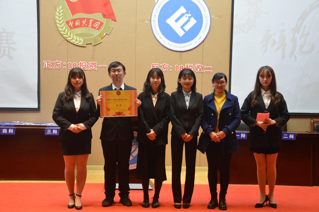 经过预赛、复赛的激烈争锋,18投资一班代表队和18税收二班代表队成功跻身决赛。双方围绕“抵制剧本抄袭,业界和观众谁扮演更重要的角色”展开激烈论战。其中正方18投资一班持“抵制剧本抄袭,观众比业界扮演更重要的角色”观点,辩手有平诗语、牛凯凯、樊姝、梁嘉峰。反方18税收二班持“抵制剧本抄袭,业界比观众扮演更重要的角色”观点,辩手有陈薇、武婷雯、宋煊召、莫紫琪。在双方精彩的赛事回顾视频后,比赛正式开始。比赛分为六个环节:立论陈词、交叉盘问、驳论、攻辩、自由辩论、总结陈词。在立论陈词、交叉盘问等环节中,双方选手思路清晰,角度多样,使现场气氛迅速升温。在随后进行的自由辩论环节中,双方辩手展开更深入的辩论,个个妙语连珠,唇枪舌战,逐渐将比赛推向高潮,现场观众反应热烈,掌声不断。辩论环节结束后,校辩论队队长任宇对辩论进行了深入点评,提出了详细的建议。最终18税收二班代表队(反方)摘得桂冠,反方四辩莫紫琪荣获“最佳辩手”。