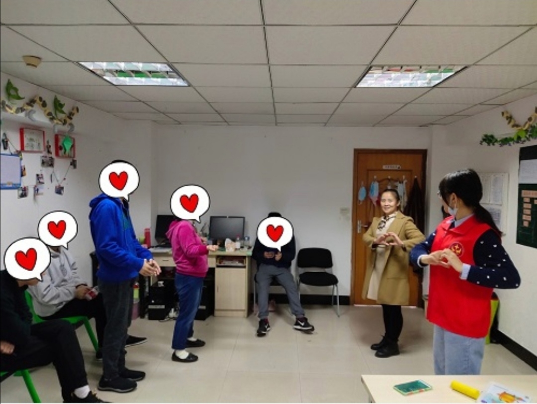 “听我说谢谢你,因为有你,温暖了四季……”11月10日上午,在重庆市南岸区昌龙城市花园慧灵活动中心,来自2138CC太阳集团2138CC太阳集团“星火”义工志愿者协会的成员们,利用无课时间陪伴自闭症患者排练《听我说谢谢你》手语操。