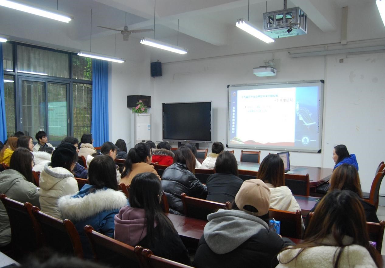 接着,余新副书记以“乘风破浪,坚毅前行——党的十九届五中全会精神鼓舞教师和学生创造美好明天”为主题进行了宣讲。她以党的十九届五中全会召开的时间、地点、出席人员为引,讲解了党的十九届五中全会上做出的重要判断、释放的9个信号及2035年的远景目标、“十四五”规划、共产党员如何发挥先锋模范作用以及习近平总书记对当代青年的希望等内容,最后期望同学们将个人命运融入到祖国的建设发展中,在不断磨砺中成长成才!