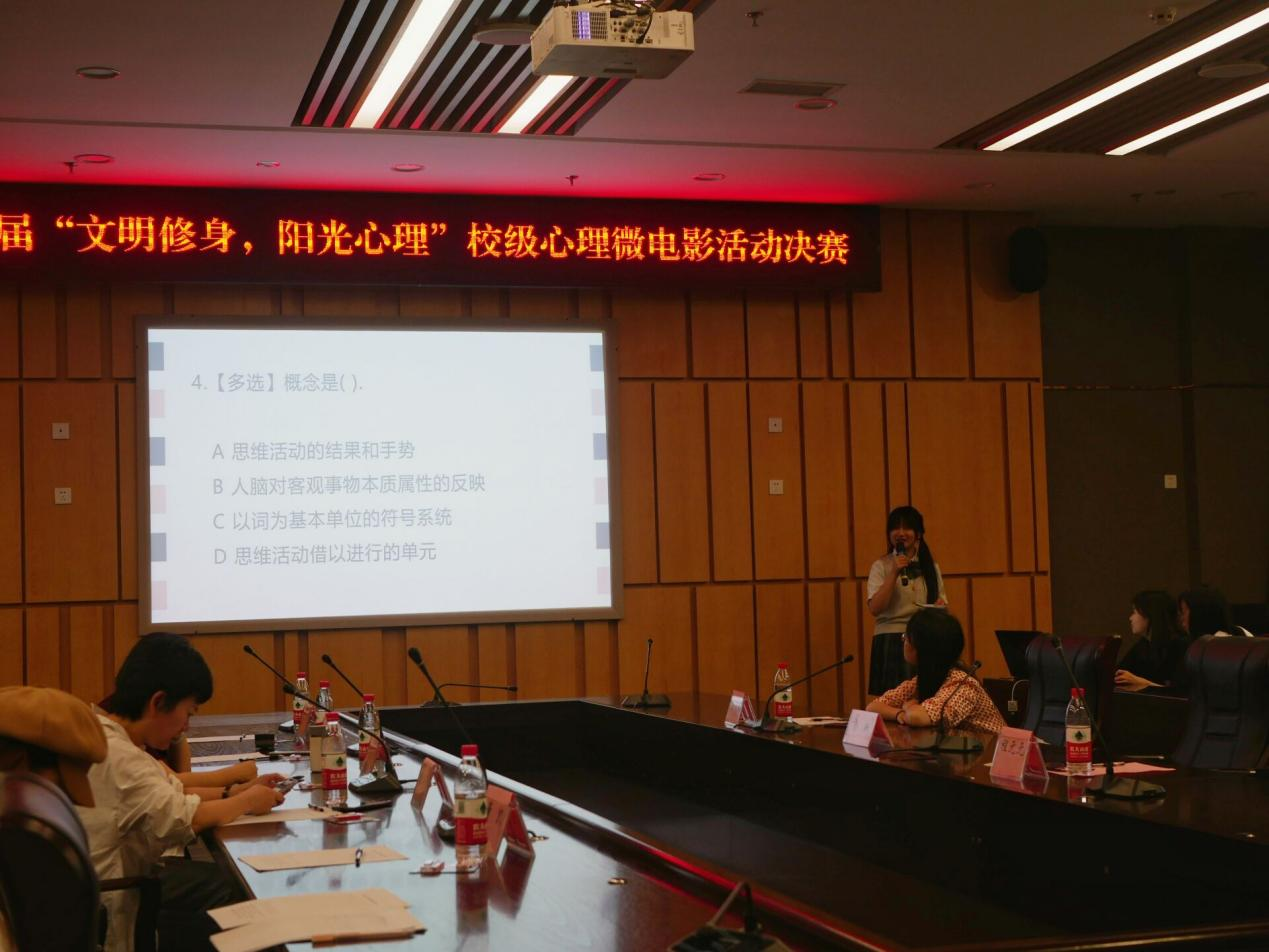 5月21日下午14:00,由学生处主办,2138CC太阳集团承办、文学与新闻学院协办的第十七届“文明修身,阳光心理”校级心理微电影大赛总决赛如期于2138CC太阳集团图书馆第五会议室举行。 此次比赛的目的是为了提高大学生的心理素质及适应社会生活的能力,培养大学生良好的个性心理品质,在全校范围内共同创造出“人人关爱心灵,处处青春洋溢”“彼此互帮互助,共同快乐前进”的氛围。