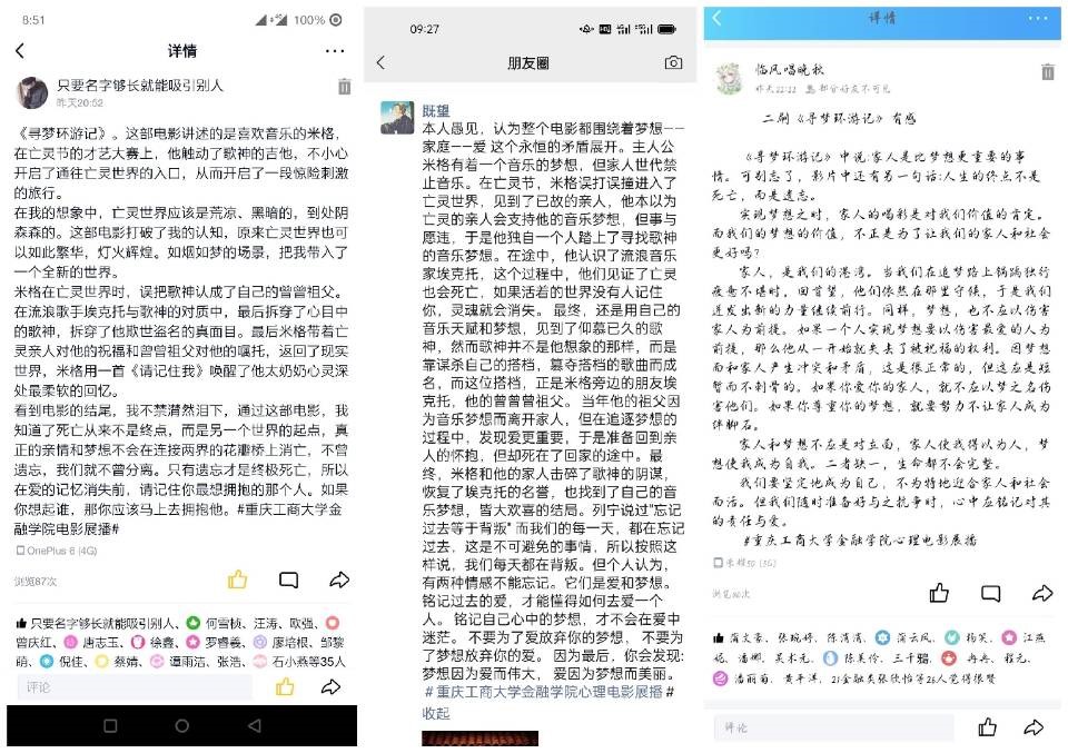 会后,许多同学也通过社交媒体积极发言,分享自己关于影片和生活的看法。